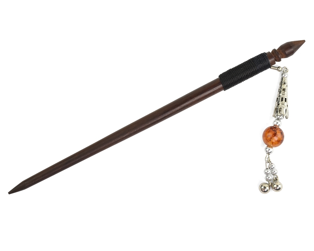 Dřevěná jehlice do vlasů, Zdobená kovovým přívěsem a barevným korálkem.Jedná se o rukodělný výrobek.Materiál: Dřevo, kov, plastDélka jehlice: 18,5 cm przeczytaj całość