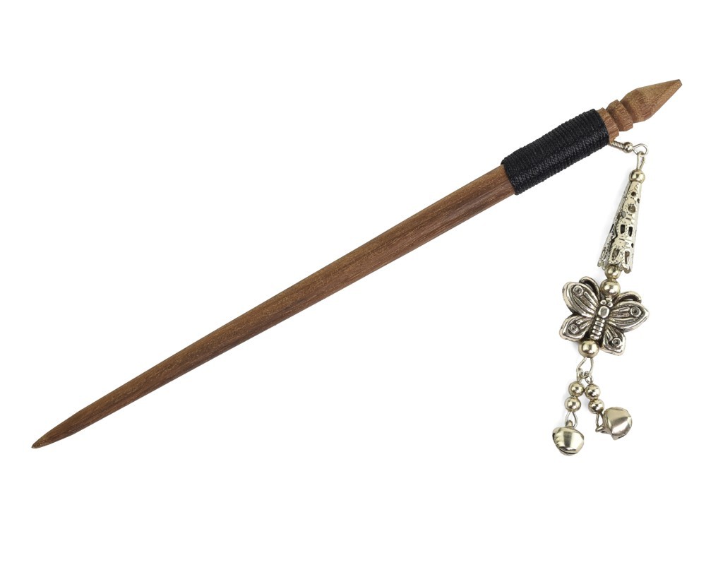 Jehlice do vlasů 18,5 cm, dřevo, rolničky, korálek kov H - motýl