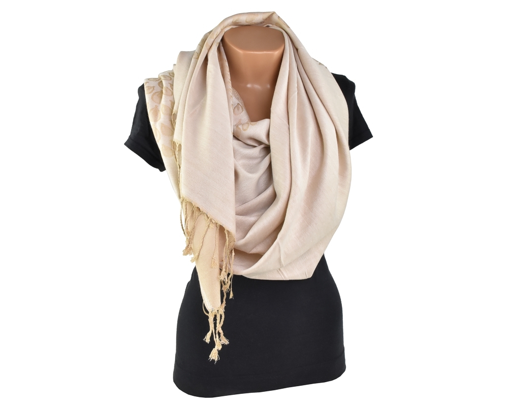 Elegantní šál v imitaci pašminy Popis: vytkaný vzor, třásně na kratších stranách šátku, metalické odstíny Rozměry: 70 x 180cm Materiál: 70% polyester, 30 % bavlnaPozn.Některé kusy mají od výrobce chybně označeno složení. Správné složení šátku je polyester a bavlna. Omlouváme se a děkujeme za... przeczytaj całość