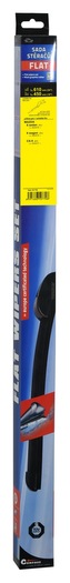 Sada dvou plochých stěračů FLAT (řidič + spolujezdec) se speciálním uchycením. Délky stěračů a systém uchycení na ramínko jsou přizpůsobeny vybraným vozům (viz tabulka použití).