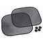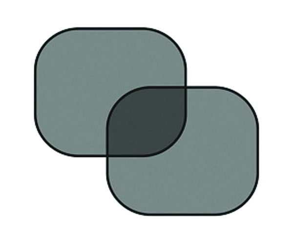 Zestaw 2 sztuk osłon przeciwsłonecznych z przyssawkami do szyb samochodowych. Sposób perforacji materiału zapewnia absorpcję ok. 70% promieni słonecznych. Po użyciu osłonę można wygodnie złożyć z powrotem do etui. Kolor czarny, kształt osłony - owalny, bez nadruku.