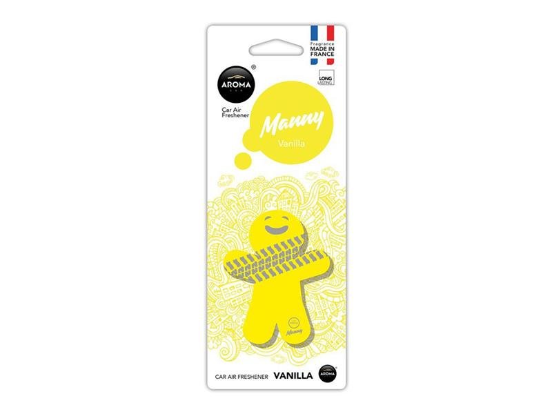 Vůně do auta MANNY Vanilla Postavička do mřížky ventilace, která rychle provoní celé vozidlo. Díky designu, vkusně doplní kterýkoliv interiér vozu. Každé balení je opatřené nelepeným testerem, takže hned víte, jestli je vůně pro Vás ta správná. przeczytaj całość