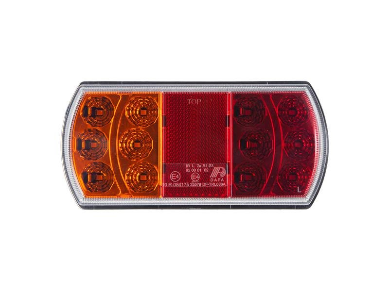 Sdružená lampa zadní - praváTechnické parametry:- napájení: 12-24 V- směrové (6x LED), brzdové/poziční (6 LED), osvětlení registrační značky (3x LED)- odrazový element - obdélník (63 x 40 mm)- rozměry: šířka 164,7 mm, výška 79,8 mm, hloubka 35,4 mm,- rozteč upevňovacích šroubů: 100...