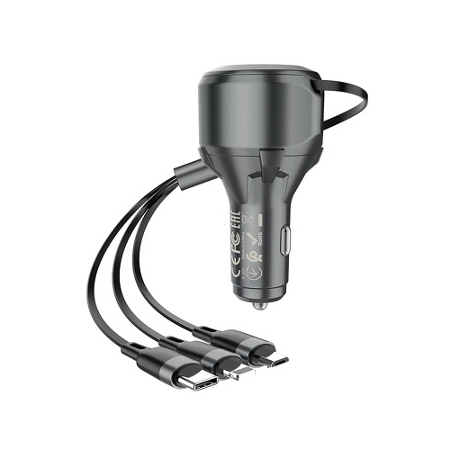 Nabíječka do auta s USB konektorem a zatahovacím kabelem se třemi konci.Umožňuje okamžité doplnění energie ve třech zařízeních současně.Vinutý kabel se třemi konci - umožňuje upravit požadovanou délku podle vašich potřeb.Díky třem tipům: Lightning, Micro-USB, USB-C můžete nabíjet tři...