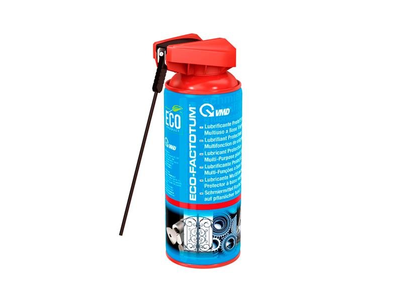 ECO Factotum je mazací, čistící, odmašťovací, ochranný a nerezový přípravek, čistě na rostlinné bázi a ekologický, s maximálním ohledem na životní prostředí. Díky speciálnímu složení je vhodný jako náhrada za ropné produkty, láhev je naplněna nehořlavým plynem. Produkt neobsahuje silikon. mazivo na zámky, řetězy, převody a kabely. Ideální pro uvolnění rezavých částí a šroubů. Odstraňuje vlhkost z elektrických a elektronických obvodů. Má vynikající čistící a odmašťovací účinek, rozpouští tuky, bitumeny a dehty, odstraňuje všechny stopy lepidel, barev a pryskyřic stopy na povrchu.