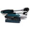 Profesionální přenosný kufr vybavený kvalitním nářadím, včetně ráčnových klíčů s velmi jemným mechanizmem a spojovacím materiálem, přehledně uspořádaným v předem určených pozicích.Spodní plato obsahuje kladivo, metr, samosvorné a odizolovávací kleště, spojovací materiál a další užitečné vybavení...