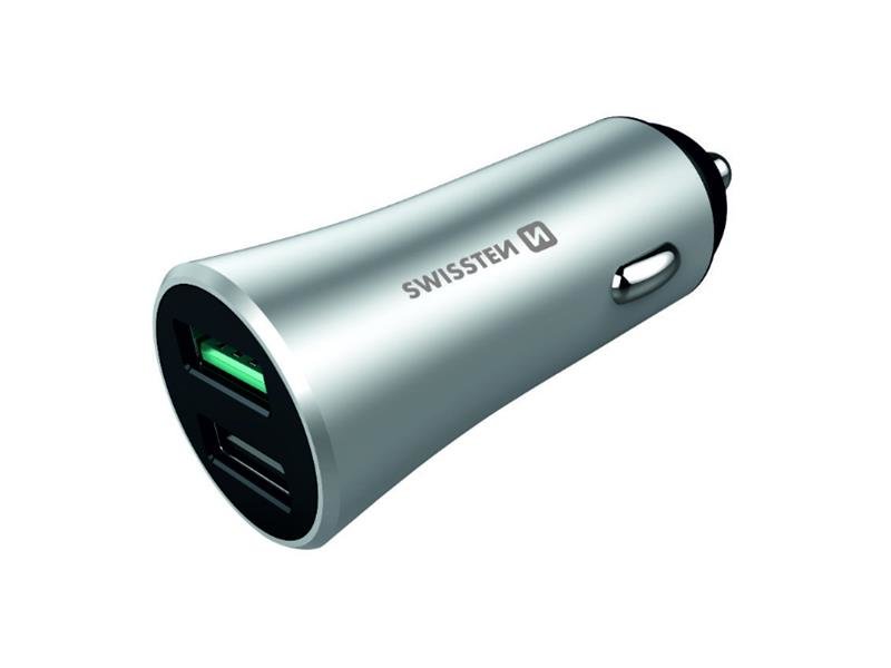 Autoadaptér USB SWISSTEN 20111630 Elegantní metalická autonabiječka s dvěma výstupy USB s celkovým výkonem 30W. Jedno USB je vybaveno rychlonabíjením technologie QUALCOMM 3.0 pro smartphony s OS Android. Druhé USB má výstupní proud 2,4A. Baleno v blistru...