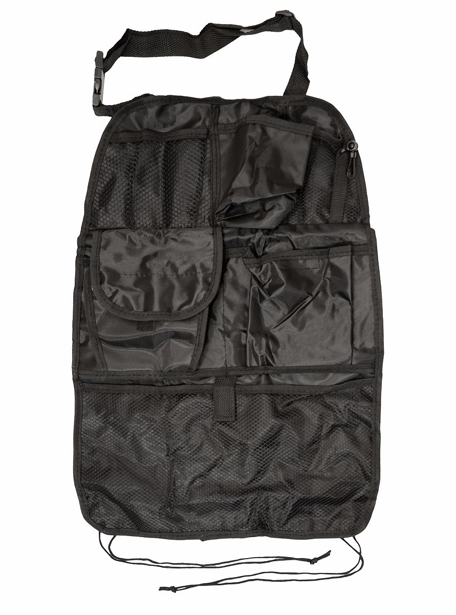 Organizér na přední sedadlo COMPASS BLACK Organizér určený k připevnění na zadní stranu předního sedadla. Upevnění horní části pomocí popruhů za opěrku hlavy, spodní části popruhy za sedadlo. Jedinečné uspořádání - několik různých kapes vhodných pro mapy, nápoje a různé... przeczytaj całość