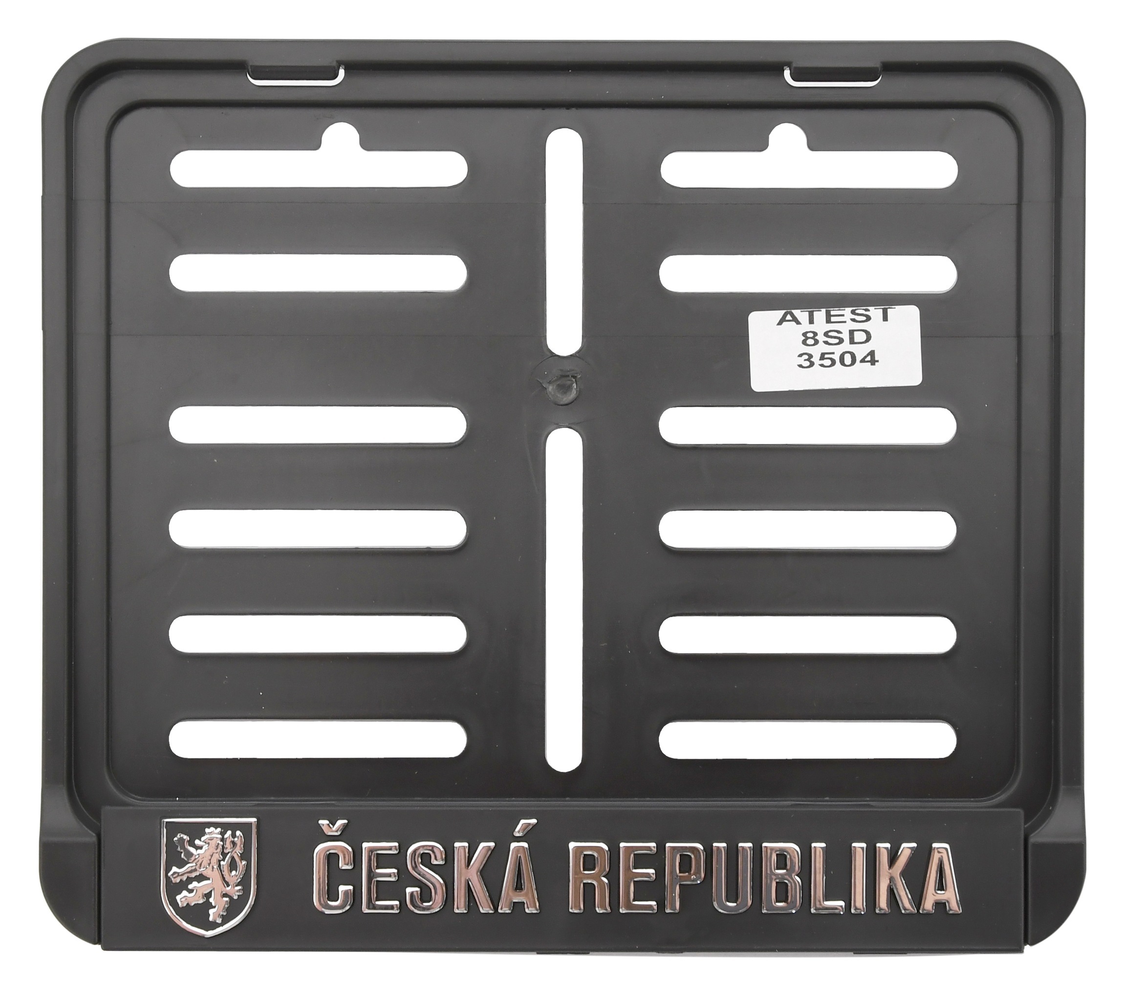 Plastikowa podkładka pod tablicę rejestracyjną (RZ) lub państwową tablicę rejestracyjną (SPZ) o standardowych wymiarach dla motocykli. Podkładka jest wyposażona w wypukły 3D emblemat lwa i napis "Česká republika" o chromowanym wykończeniu. Podkładka posiada dolną listwę z zatrzaskami zabezpieczającymi oraz wiele otworów montażowych, dzięki czemu jej montaż jest naprawdę uniwersalny. Instrukcja montażu: Oddziel dolną listwę w miejscach wytłoczeń (jeśli jest częścią podkładki). Zamontuj podkładkę na motocyklu za pomocą odpowiednich śrub. Nałóż tablicę rejestracyjną (SPZ) na podkładkę. Zatrzaskami zatrzaśnij dolną listwę w podkładce tak, aby tablica była mocno osadzona.