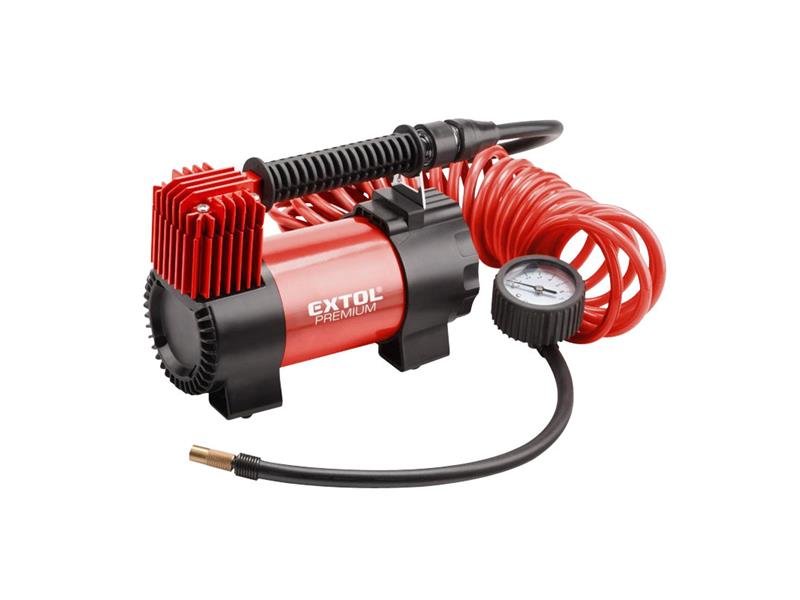 Kompresor EXTOL PREMIUM CC 160 Kompresor auto 12V v tašce s příslušenstvím, celokovové těloAutokompresor je určen k plnění a přifukování pneumatik kol, motocyklů, osobních, užitkových a nákladních automobilů (vzhledem k délce napájecího kabelu a vzduchové hadice daného...