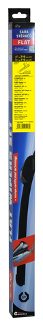 Sada dvou plochých stěračů FLAT (řidič + spolujezdec) se speciálním uchycením. Délky stěračů a systém uchycení na ramínko jsou přizpůsobeny vybraným vozům (viz tabulka použití). Vysoce kvalitní pružný člen plochého stěrače zajišťuje stejnoměrný tlak grafitového břitu v celé jeho délce, což zamezuje rozmazávání nečistot a vytváření pruhů.