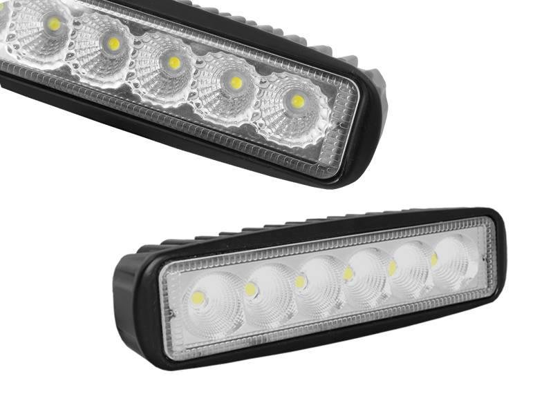 Všestranná podélná pracovní lampa s vynikajícími parametry a širokým světelným tokem. Díky použití technologie LED má lampa velmi dobrý poměr spotřeby energie k množství emitovaného světla. 6 LED diod je uzavřeno v těsném, podélném krytu, odolném proti vlhkosti a vodě. Díky tomu může uživatel lampu instalovat uvnitř i venku. Bude také perfektní jako doplňkové osvětlení automobilu nebo lodi. Lampa kompatibilní s vozidly s elektrickou instalací 9V - 60V. Vysoce kvalitní materiály použité při výrobě lampy zajišťují dlouhou životnost a minimalizují možnost poruchy.