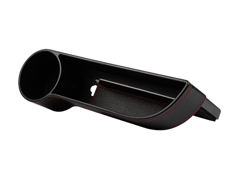 Kabinový štěrbinový prostor se třemi přihrádkami pro montáž na levou stranu řidiče mezi sedadlo a převodovku. Extrémně pěkné čalounění v černé barvě zajišťuje, že se produkt vejde do jakéhokoli interiéru a červená nit podtrhuje jedinečný a moderní design. V přední části schránky jsou dvě další zásuvky zapalovače, dva USB vstupy a čitelný LED displejem s informací o napětí autobaterie. Box je napájen připojením zařízení k zapalovači - zástrčka má indikátor signálu informující o správné činnosti.