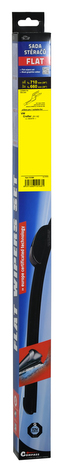 Sada dvou plochých stěračů FLAT (řidič + spolujezdec) se speciálním uchycením. Délky stěračů a systém uchycení na ramínko jsou přizpůsobeny vybraným vozům (viz tabulka použití).