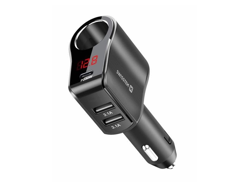 Solidnie wykonany adapter do gniazda zapalniczki (CL) z wyjściami 1x CL, 1x USB-C PD, 2x USB-A. Pakowany w blisterze Swissten.