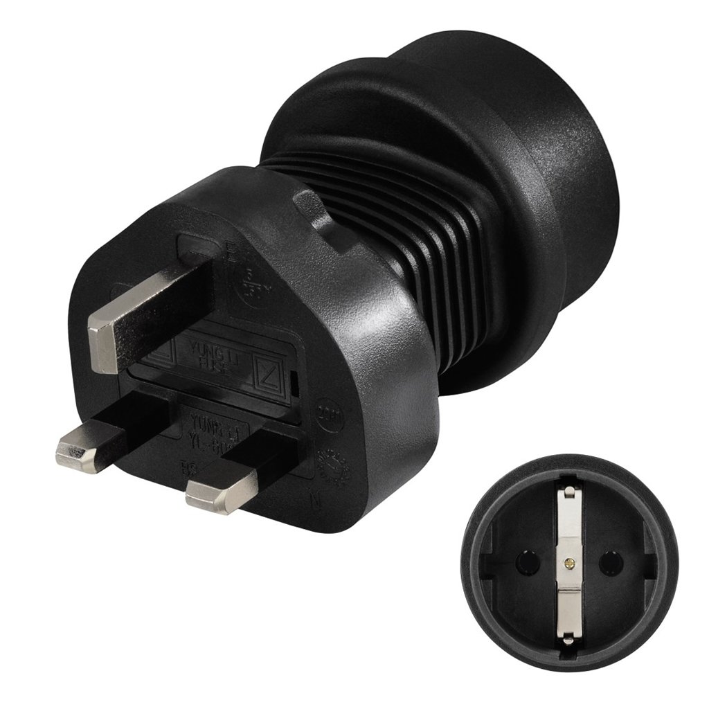 zásuvkový adaptér pro připojení spotřebičů s evropskou vidlicí do britské zásuvkyvhodné pro zásuvky typu G (Velká Británie, Irsko, Malta, Kypr, Saúdská Arábie, SAE, Indonésie, Malajsie, Hong Kong a další)vhodné pro vidlice typu C (plochá dvoupólová), F (německá Schuko), E/F (evropská unischuko,...