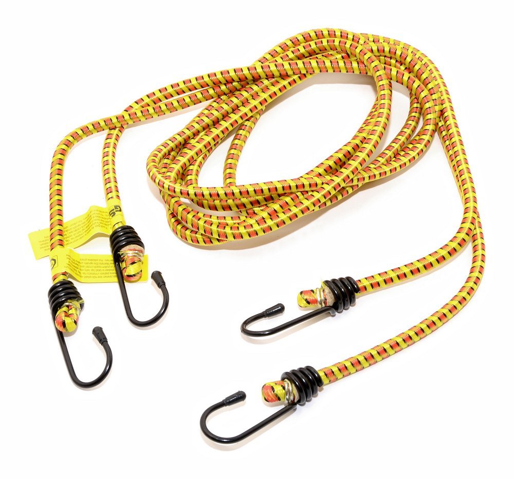 Wysokiej jakości elastyczne pasy mocujące zakończone metalowymi hakami. Opakowanie zawiera 2 sztuki, homologacja TÜV/GS.