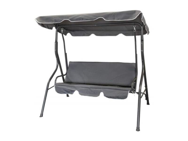 Zahradní houpačka PANAMA pro 3 osoby, vhodná na vaší zahradu či terasu, má kovovou konstrukci ošetřenou práškovým lakováním v antracitové barvě a sedák z polyesteru. Rozměry houpačky: 170 x 110 x 153 cm, výška sedáku 6 cm, nosnost 220 kg.