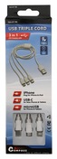 Jeden kabel dla wszystkich Twoich urządzeń! Już nigdy nie będziesz się zastanawiać, który kabel pasuje do Twojego telefonu, odtwarzacza MP3 czy tabletu - ten uniwersalny kabel USB 3w1 zrobi to za Ciebie.
