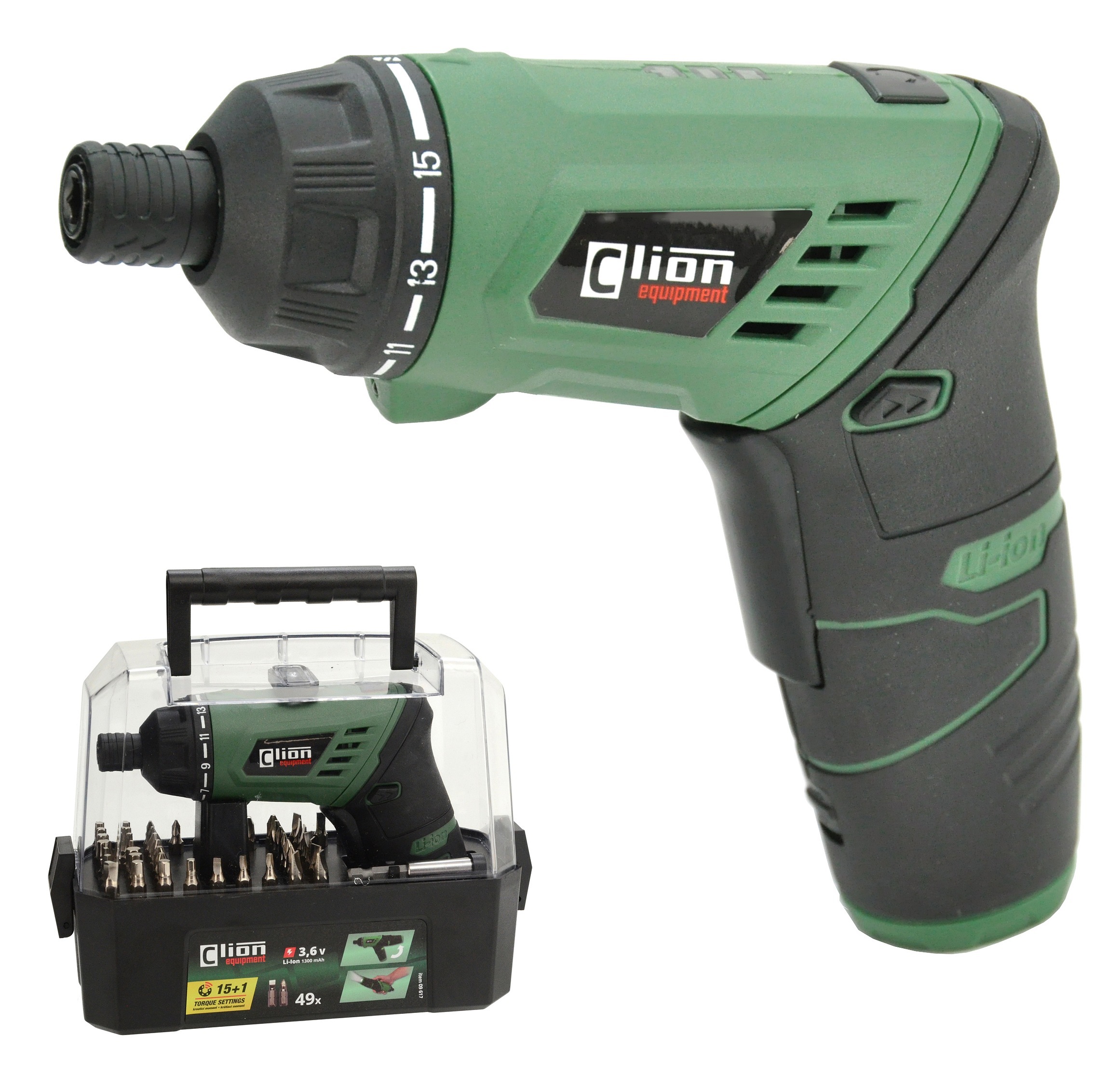 Kompaktní akumulátorový šroubovák C-LION equipment 3,6 V dodáván v displej boxu spolu s nabíječkou, prodlužovacím nástavcem a 49 ks bitů různých rozměrů a tvarů. Ovládání šroubováku je prakticky uspořádáno. Přepínání levo / pravotočivého chodu na bocích těla, nastavení utahovacího momentu v čelní...