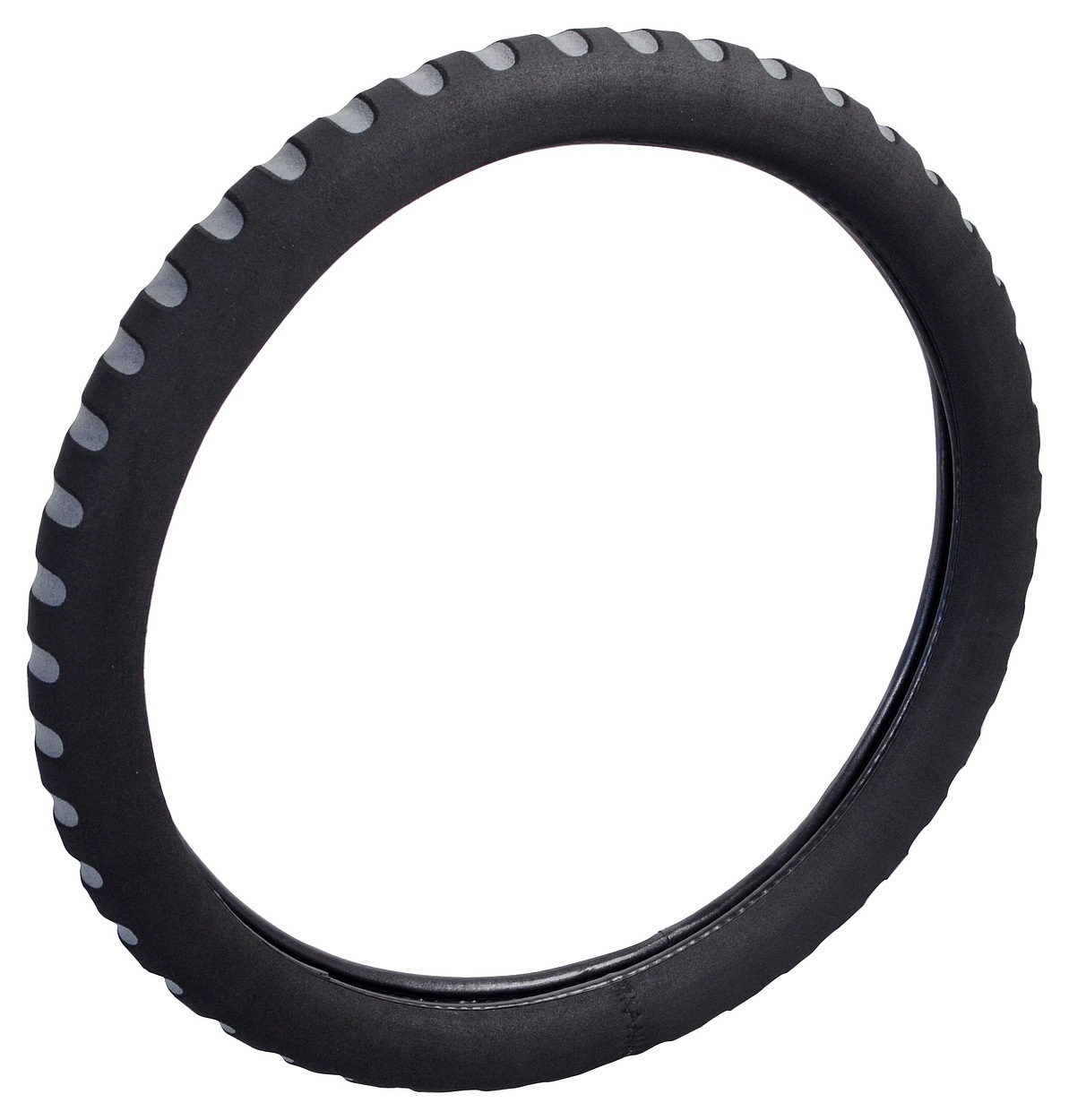 Pěnový potah určený k nasazení na volant o průměru 37-39cm. Příjemný do ruky. Barva černá s šedými prolisy. przeczytaj całość