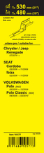 Sada dvou plochých stěračů FLAT (řidič + spolujezdec) se speciálním uchycením. Délky stěračů a systém uchycení na ramínko jsou přizpůsobeny vybraným vozům (viz tabulka použití).