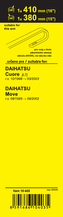 Sada dvou plochých stěračů FLAT (řidič + spolujezdec) se speciálním uchycením. Délky stěračů a systém uchycení na ramínko jsou přizpůsobeny vybraným vozům (viz tabulka použití).