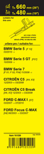 Sada dvou plochých stěračů FLAT (řidič + spolujezdec) se speciálním uchycením. Délky stěračů a systém uchycení na ramínko jsou přizpůsobeny vybraným vozům (viz tabulka použití).