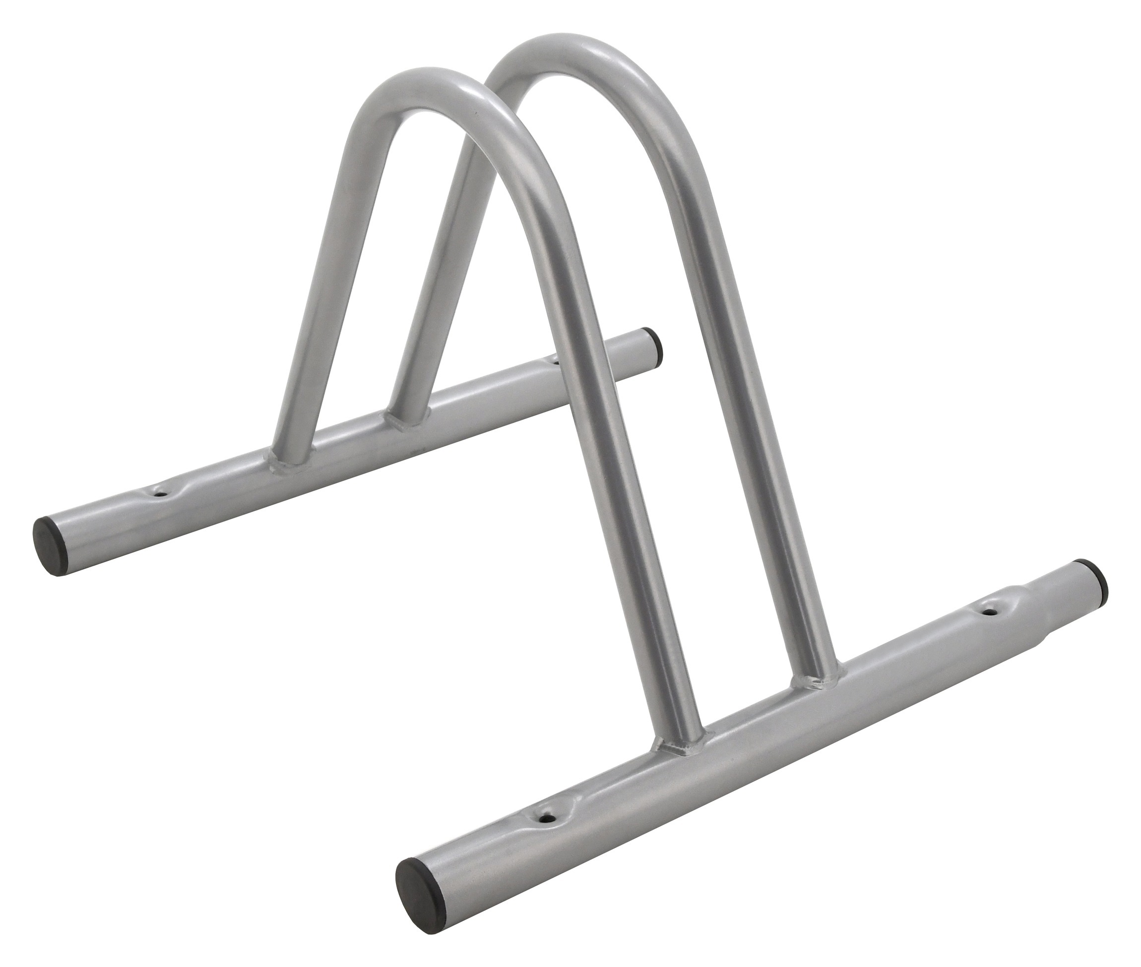 Praktický stojan na bicykl, vhodný k připevnění do země pomocí vrutů (nejsou součástí). Díky zúženému zakončení je možné spojovat více stojanů dohromady pouhým vsunutím, tím je umožněno rozšířit použití i pro více kol. Celokovová konstrukce s šedostříbrným povrchem je opatřena trubkami o průměru...