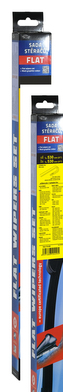 Sada dvou plochých stěračů FLAT (řidič + spolujezdec) se speciálním uchycením. Délky stěračů a systém uchycení na ramínko jsou přizpůsobeny vybraným vozům (viz tabulka použití).