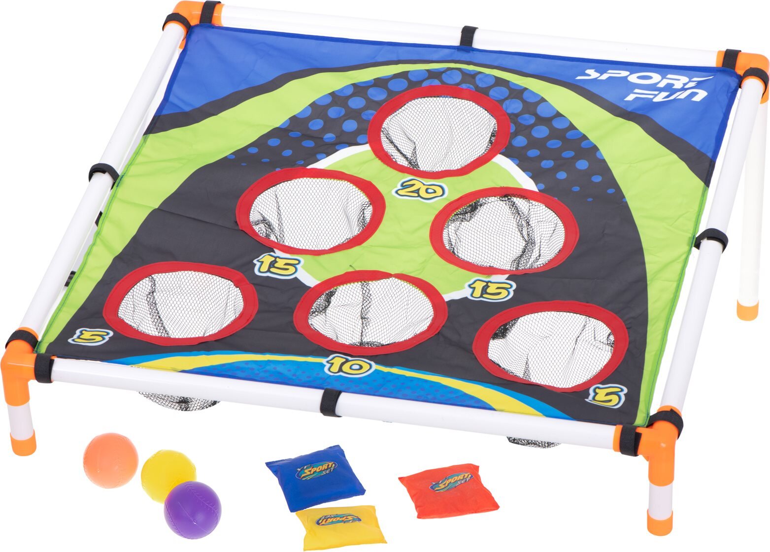 Pokud vaše dítě rádo hází různými předměty, tento výrobek vás jistě zaujme. hra spočívá v tom, že dítě (které může stát za určenou čarou) míří na otvory v hrací desce a hází do nich pytlíky,balónky kromě dovednosti házení a míření rozvíjí hra také sílu a rychlost zlepšuje koordinaci oko-ruka...
