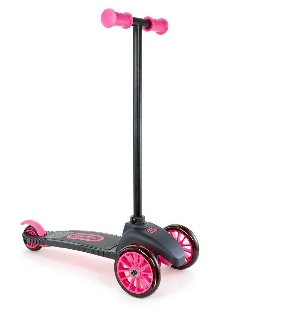 Trzykołowa różowa hulajnoga, posiada szeroką platformę i dwa duże, skrętne koła z przodu. Maksymalne obciążenie wynosi 20 kg. przeczytaj całość