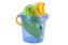 Zestaw zawiera: wiaderko, konewkę delfinka, grabki i łopatkę. Zestawy wykonane są z wysokiej jakości, bezpiecznego, bezwonnego tworzywa sztucznego.
