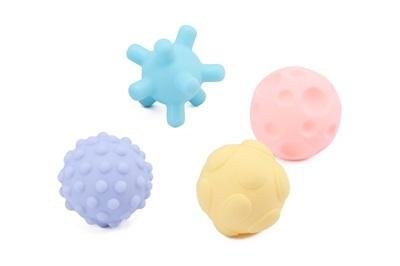 W ZESTAWIE:4 MIĘKKIE PIŁECZKI SENSORYCZNE W RÓŻNYCH KSZTAŁTACH I KOLORACH.ŚREDNICA OK. 6 CM. przeczytaj całość