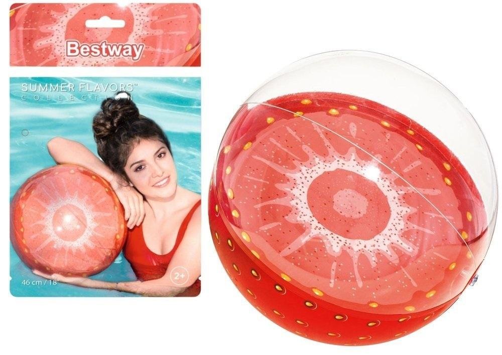 Dmuchana Piłka Plażowa 46 cm Truskawka Bestway 31042 Piłka ta idealnie posłuży Ci do zabawy na plaży jak i w wodzie. Stworzona z wytrzymałego i solidnego winylu jest odporna na uszkodzenia. Jej realistyczny nadruk przypomina prawdziwy owoc. Zawór w piłce umożliwia szybkie napompowanie oraz...