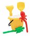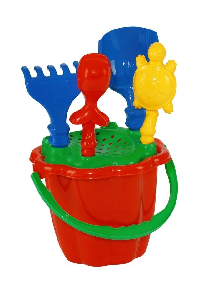 Zestaw składa się z 6 akcesoriów do piasku: średniego wiaderka, średnich grabek i łopatki, sitka oraz 2 foremek w kształcie zwierzątek morskich. Produkt wykonany jest z trwałych i bezpiecznych surowców, dzięki czemu odporny jest zarówno na warunki atmosferyczne jak i jest bezpieczny dla dzieci. Dostępny w różnych wersjach kolorystycznych.