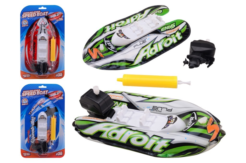 Nafukovací člun s natahovacím motorem – člun jednoduše nafouknete přiloženou hustilkou. Motor je natahovací bez bateriový. przeczytaj całość