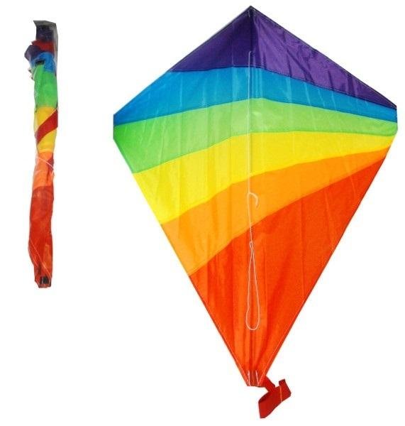 Kolorowy latawiec w paski do puszczania podczas słonecznych, trochę wietrznych dni. Produkt zapakowany w przezroczysty worek. Produkt dla dzieci od 3 lat. przeczytaj całość