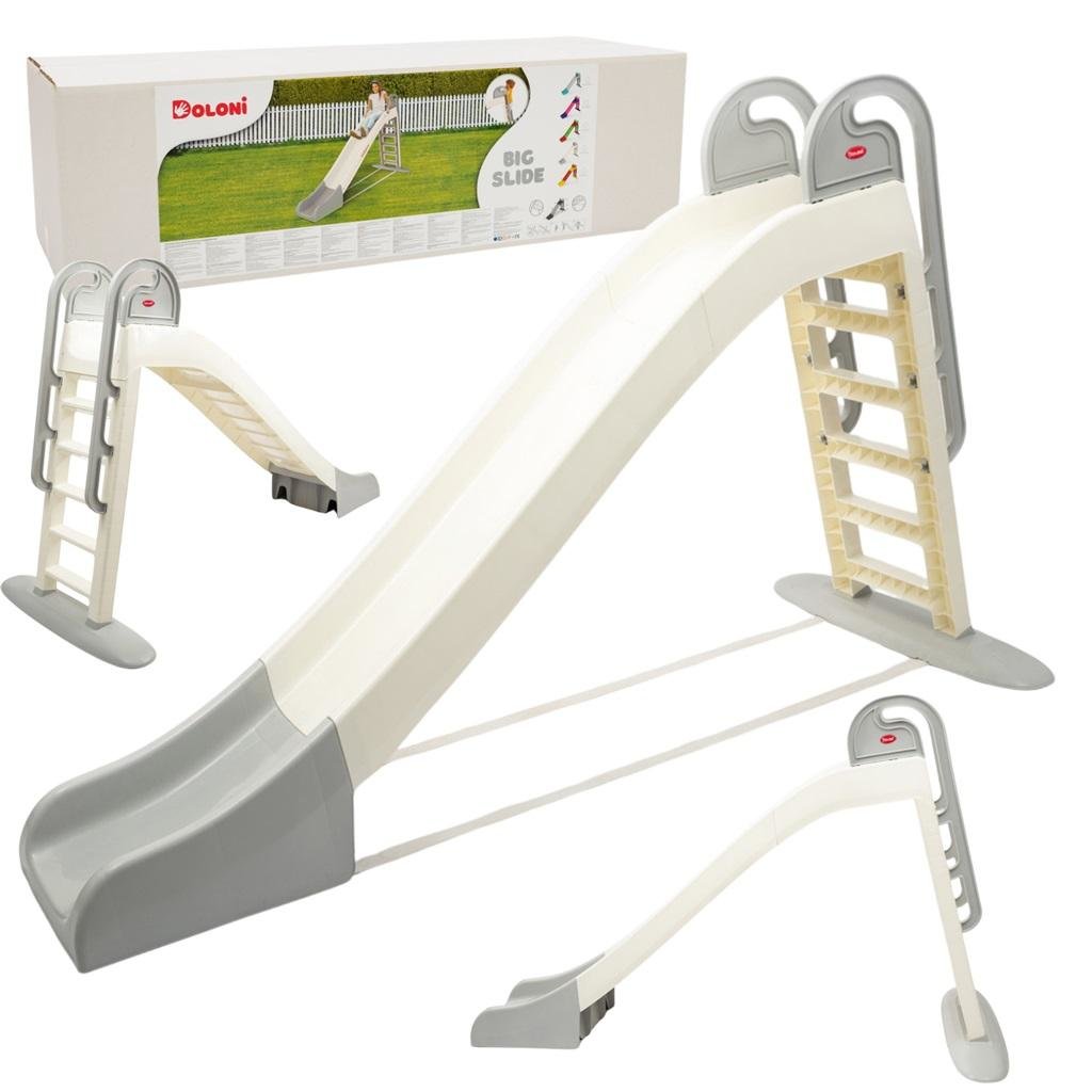 Zjeżdżalnia dla dzieci w kolorze biało-szarym to niezawodna i stabilna konstrukcja, która zapewnia mnóstwo zabawy i radości najmłodszym. Dzięki wygodnej drabince, wchodzenie na zjeżdżalnię nie sprawia trudności nawet najmniejszym maluchom. Wysokie ścianki boczne oraz zaokrąglony koniec zjeżdżalni...