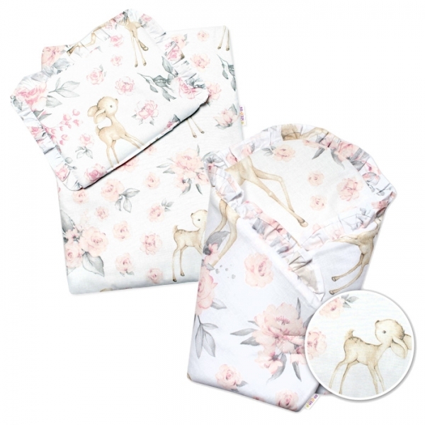 Sada pro panenku 3D, Baby Nellys - zavinovačka, peřinka a polštářek, Srnka a růže