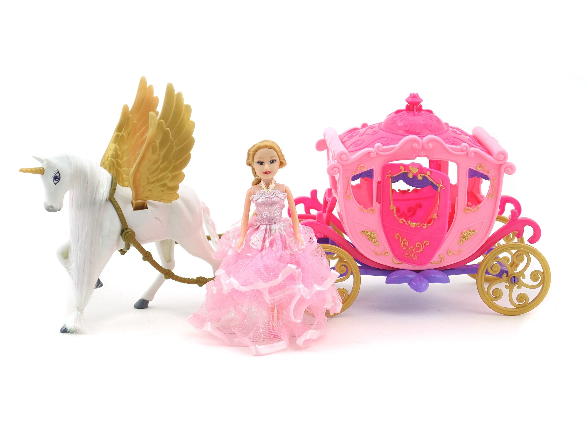 Kočár s koněm a panenkou, se světlem; 43,5x21,5x14cm, 3x AG13 jsou součástí przeczytaj całość