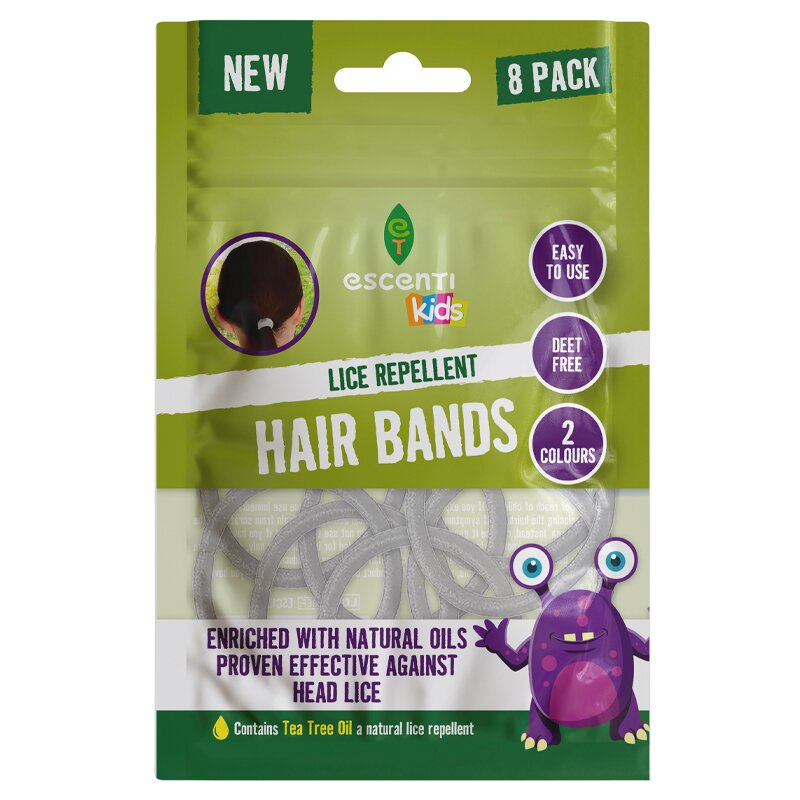 Chroń swoje dzieci przed wszami dzięki tym praktycznym i skutecznym gumkom do włosów Escenti. Gumki są nasączone naturalnymi olejkami, które odstraszają wszy i pomagają zapobiegać ich osadzaniu się we włosach.