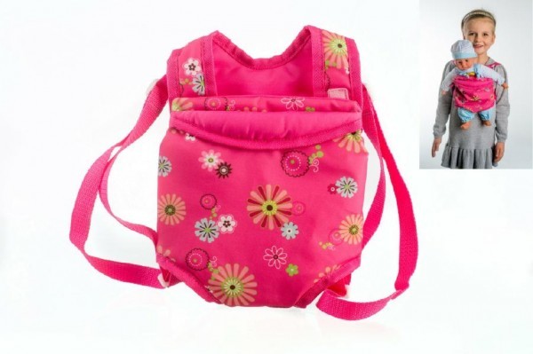 Dziecięce nosidełko dla dziewczynek, w którym mogą nosić swoje lalki i misie. Wymiary kieszeni nosidełka to 29 x 20 cm, długość pasków jest regulowana. przeczytaj całość