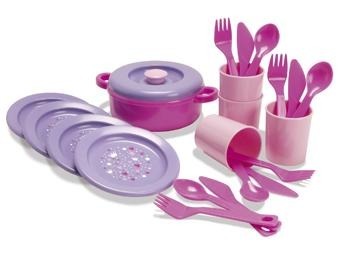 sada perfektní. Plastová jídelní sada v růžovo fialovém designu obsahuje