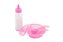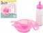 Zestaw dla lalek zawierający butelkę i miseczkę ze sztućcami to idealny pomocnik dla małych opiekunek, które chcą zapewnić lalce realistyczne doświadczenie podczas karmienia i podawania napojów.