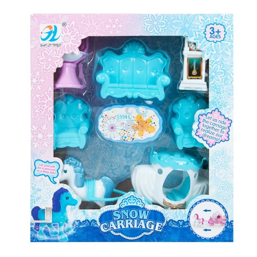 Set nábytku ideální do domečku pro panenky: kočár s koněm, toaletní stolek, stolek, pohovka, 2x křeslo, stojící hodiny. Nezbytná sada nábytku do domečku pro panenky. Kromě skvělé zábavy pomohou rozvíjet dětskou mysl! Obsah setu: 2x křeslo, pohovka, koňský spřežení, toaletní stolek, stolek,...