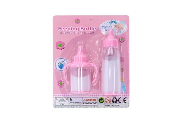Kojenecká lahvička pro panenky s mlékem 2ks plast 12cm na kartě