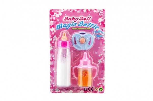 Kojenecká lahvička 2ks s dudlíkem pro panenky plast 3ks na kartě