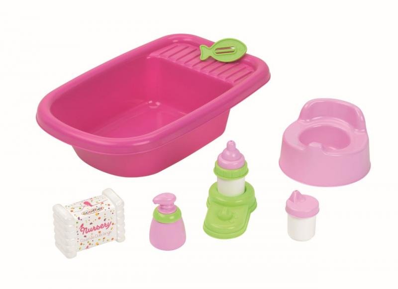 Růžová vanička, nočník, plenky a další příslušenství pro panenky. Velikost vaničky 32 cm. przeczytaj całość