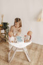 Baby Nurse Krzesełko do karmienia dla bliźniąt Dla lalek do 42 cm  W zestawie 2 łyżeczki i 2 talerzyki Po wypięciu nóżek krzesełko staje się bujaczkiem Brak lalki w zestawie. przeczytaj całość